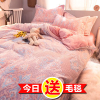 炫耀水星家纺珊瑚绒四件套水晶宝宝绒冬季加厚被套床单法莱法兰绒