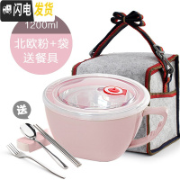 三维工匠304不锈钢泡面碗保温餐盒上班族学生便携宿舍碗筷套装小饭盒 北欧粉1200+餐具四件套+保温袋