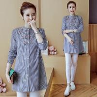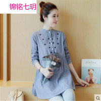 孕妇装秋款上衣2017新款韩版宽松秋季孕妇衬衫职业装长袖潮妈条纹