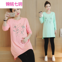 锦铭七玥韩国秋季孕妇装 长袖 外出时尚哺乳衣外出上衣孕妇卫衣中长款冬季
