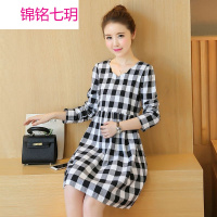 锦铭七玥潮中长款孕妇裙子韩版宽松秋季秋款上衣长袖孕妇装秋装格子连衣裙