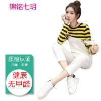 锦铭七玥孕妇套装新款孕妇装批秋大码上衣+条纹裤子孕妇休闲运动套装