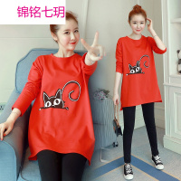 锦铭七玥2018新款春秋装孕妇装中长款长袖孕妇T恤 上衣时尚百搭大码孕妇装