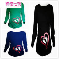 锦铭七玥欧美爆个性脚印印花孕妇装长袖上衣百搭打底衫