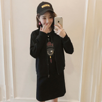锦铭七玥韩版孕妇上衣中长风衣外套连帽宽松休闲大码风衣孕妇外套