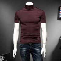 秋冬款加薄绒男士半高领短袖T恤纯色男装修身打底衫衣服保暖秋衣