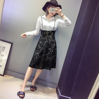 珂依舍2017秋装新款现货秋季新款韩版衬衣拼接蕾丝背带裙假两件套连衣裙