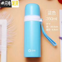 三维工匠不锈钢保温杯女学生简约儿童水杯男不锈钢户外大容量便携杯子 天蓝色350[无赠品]