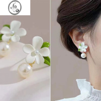 JiMi清新白色栀子花耳钉法式白花嫩绿耳环高级感珍珠耳坠温柔超仙耳饰