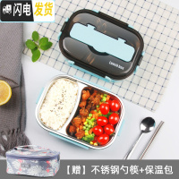 三维工匠上班族饭盒健身减脂学生1人带饭分格型便携304不锈钢带盖保温餐 [2格北欧蓝]304饭盒800+勺筷+饭盒包