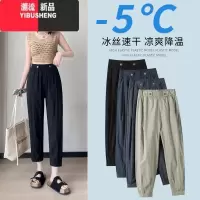 YIBUSHENG冰丝运动裤女宽松西装七分裤女季薄款2024新款显瘦哈伦休闲中裤