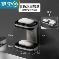 敬平肥皂盒免打孔创意壁挂式卫生间双层沥水香皂盒家用浴室香皂架 黑色(双抽款)带沥水托盘