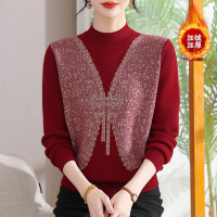 加绒保暖妈妈针织衫冬季加厚女士毛衣中老年人洋气中领冬装打底衫