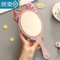 敬平可爱蝴蝶结少女创意手柄化妆镜手拿美容院化妆小镜子便携随身镜子 可爱粉色蝴蝶结便携式用镜