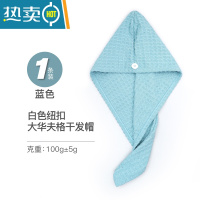 敬平干发帽吸水女速干毛巾2021新款厚华夫格洗头发包头器擦头巾 [单个装]蓝色