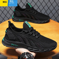 聚范男鞋夏季透气薄款网面运动鞋软底防滑百搭黑色跑步潮鞋