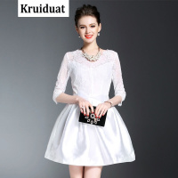 Kruidvat2017春新款女装气质公主裙蕾丝拼接腰间蝴蝶结连衣裙B086