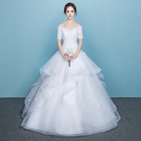 一字肩婚纱礼服2017新款新娘结婚韩版齐地大码长袖显瘦公主蓬蓬裙
