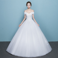 一字肩婚纱礼服2017新款新娘结婚显瘦公主简约齐地婚纱大码冬季
