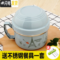 三维工匠不锈钢饭盒带盖双层食堂便当盒学生大号打饭缸大容量泡面碗快餐杯 北欧少女粉(送餐具)