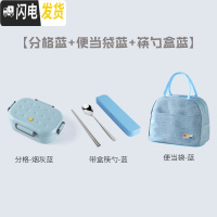 三维工匠减脂餐饭盒分隔型上班族微波炉加热专用健身便当餐盒沙拉分格日式 分格蓝+便当袋蓝+筷勺盒蓝