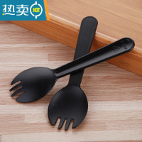 敬平加厚塑料勺子叉单独包装叉勺一体蛋糕叉甜品勺儿童水果叉子 黑色简装100支牙签