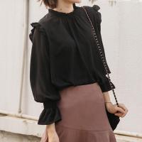 2017新款瞌睡兔欧式复古木耳边小翅膀雪纺衫女秋装2017新款上衣甜美衬衫