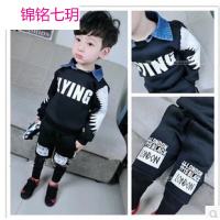 锦铭七玥童装2015秋季新款男童个性牛仔衬衫领翅膀卫衣拼接长裤童套装