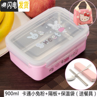 三维工匠304不锈钢中小学生饭盒保温便当盒带盖分格 儿童方形微波炉快餐盘 粉兔带隔板送餐具+袋子+水杯