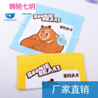 锦铭七玥孚日洁玉 熊出没开心熊纯棉儿童卡通方巾 全棉柔软吸水洁方巾
