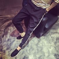 丹杰仕2017新款束脚小脚裤男潮韩版修身休闲裤男九分裤青少年学生春季休闲裤男快手红人