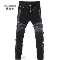 丹杰仕2016四季款新款韩版修身休闲裤皮裤潮裤弹力小脚裤个性嘻哈哈伦裤皮裤男