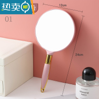敬平化妆镜ins风少女心学生宿舍美容美妆手柄便携随身手持梳妆小镜子 01#圆形北欧粉便携式用镜