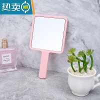 敬平手持镜ins风少女心学生宿舍美容美妆手柄便携随身便携梳妆小镜子 [方形粉色]尺寸约16*9cm便携式用镜