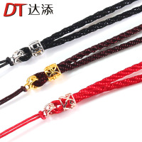 琥珀蜜蜡吊坠挂绳男女玉佩佛牌黑曜石项链绳子手工编织翡翠毛衣链_3