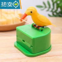 敬平网红同款智能牙签盒按压式自动个性卡通小鸟牙签筒创意家用牙签罐 黄鸟绿底一个+牙签