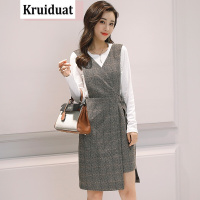 奈琴尔2017秋季新款韩版时尚连衣裙背带裙T恤两件套套装裙 灰色 XL