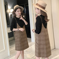 薇侣2017产后外出喂奶哺乳套装裙哺乳T恤+毛呢背带裙两件套喂奶衣816A