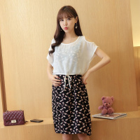套装套裙时尚气质简约优雅漏肩韩版圆领2017年夏季T恤+连衣裙孕妇装