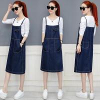 牛仔两件套2018新款女装春装潮连衣裙时尚吊带裙子T恤时髦套装裙