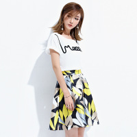 印花套装裙2018夏季新款女装名媛短袖白T恤+A字短裙两件套女CYLLBZFS