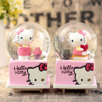 kt凯蒂猫雪花旋转八音盒音乐盒水晶球送女生女孩生日礼物品送新年