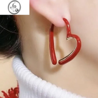 JiMi精致红色滴油爱心耳钉S925银针高级感甜美耳环气质百搭设计感耳坠