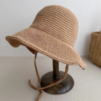 韩国东大针织防晒渔夫草帽夏季百搭系带出游大檐遮阳帽太阳帽子