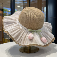 法式郁金香蕾丝边草帽女夏季度假风海边遮阳防晒帽大帽檐太阳帽子
