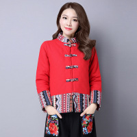 顺崇2017民族风秋冬新款盘扣棉衣女复古拼接中国风短款加厚棉袄