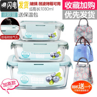 三维工匠上班族玻璃饭盒微波炉加热专用保鲜分隔型保温便当带盖碗套装 北欧蓝长410+长700+加高长1080+包[推荐]