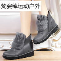 盾狐雪地靴女2017秋冬季新款兔毛短靴韩版加绒保暖棉鞋内增高女靴