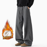日系复古针织休闲裤男款秋冬加绒加厚保暖直筒男士运动拖地裤
