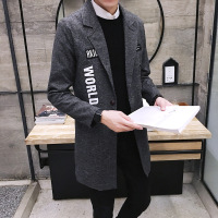 莞馨(wanxin)新款长款西装风衣男羊毛呢大衣英伦风大码韩版修身青少年印花大衣外套